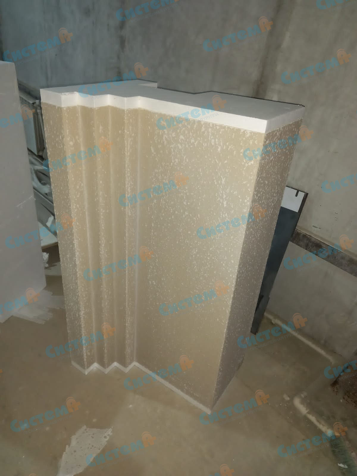 Карнизы для оформления фасада здания театра изготовили из пенополистирола методом контурной резки. Для укрепления архитектурных элементов выбрали эластичное кварцевое покрытие, которое внешне и на ощупь напоминает песчаник. По результатам тестирования образцов заменили пенопласт на более плотный. Снова готовимся к производству!